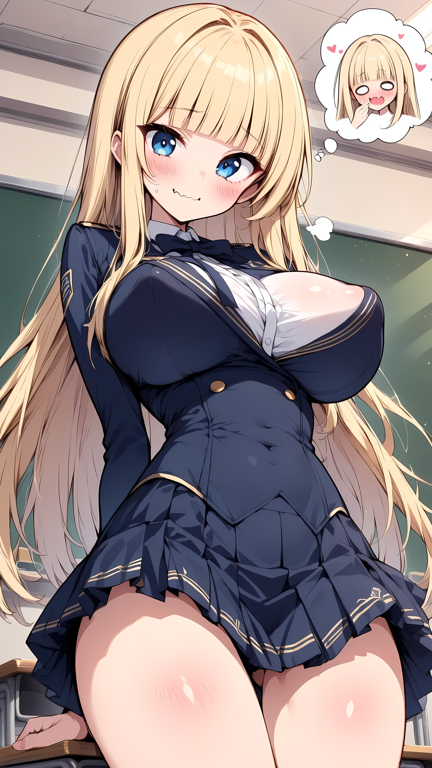 制服ブラウスは限界までパツパツ、スカートは15cmは短く、リボンタイはゆるゆる。まさに“禁断のグラドル制服”スタイルそのものの格好だ。