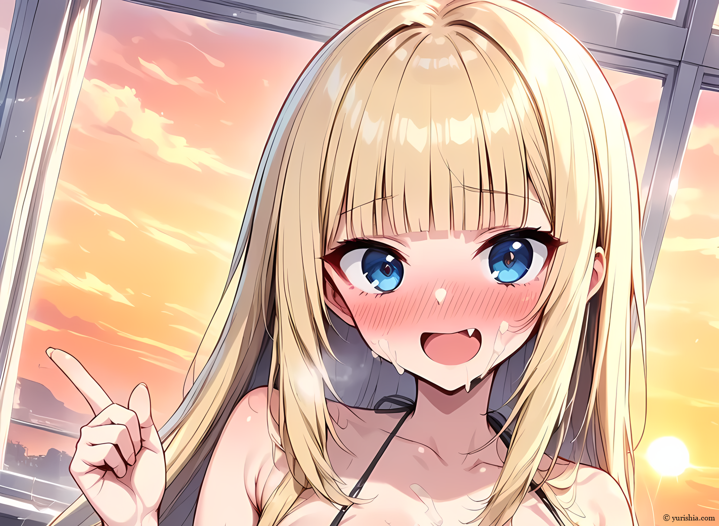 「ひゃうっ……♡ 紐、ズレちゃう……♡ でも……おっさんだけに見せる特別サービスだから……♡」